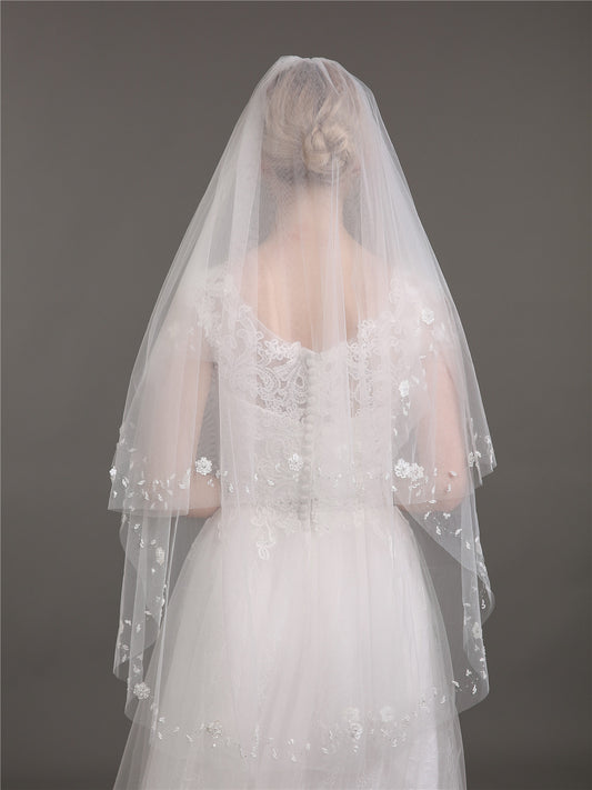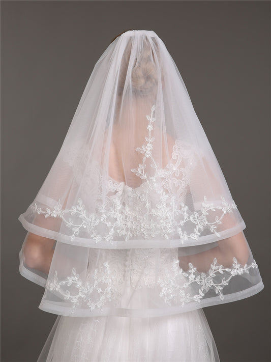 Babaroni Veil02Veil02 Corto Dos Capas Velos De Novia Aplicado Marfil