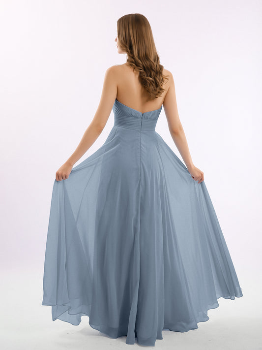 Babaroni CamilaCamila Sin Tirante Gasa Plisado Cortes De Dama De Honor Azul Polvoriento Tallas Grandes