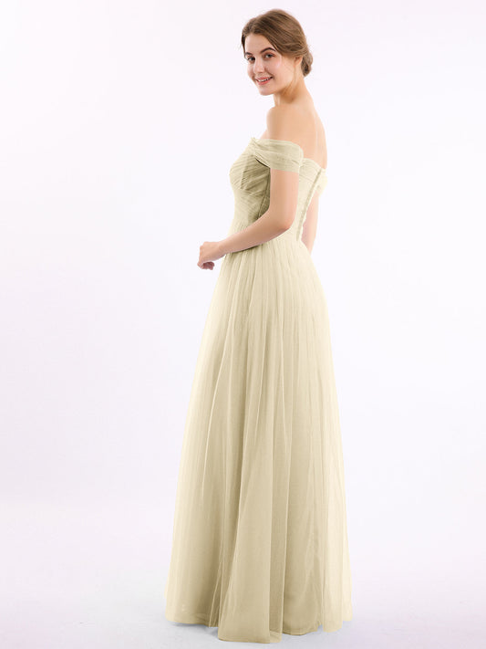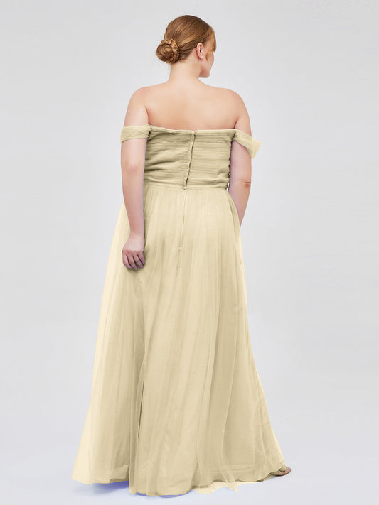 Babaroni EuniceVestido de tul con escote en hombros caídos y escote en corazón Champán Tallas Grandes
