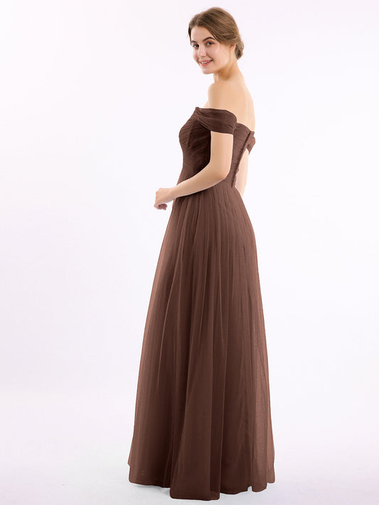 Babaroni EuniceVestido de tul con escote en hombros caídos y escote en corazón Chocolate Tallas Grandes