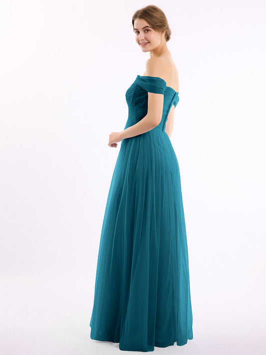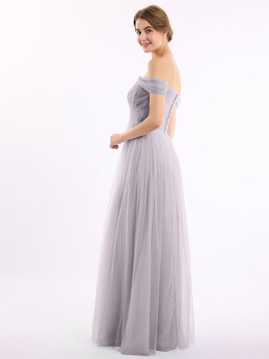 Babaroni EuniceVestido de tul con escote en hombros caídos y escote en corazón Azul Polvoriento Tallas Grandes