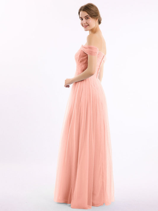 Babaroni EuniceVestido de tul con escote en hombros caídos y escote en corazón Coral Tallas Grandes