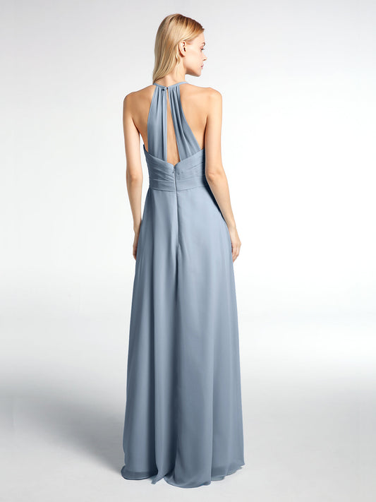 Babaroni AstridVestido elegante de dama de honor con tirantes finos y escote en V Azul Polvoriento