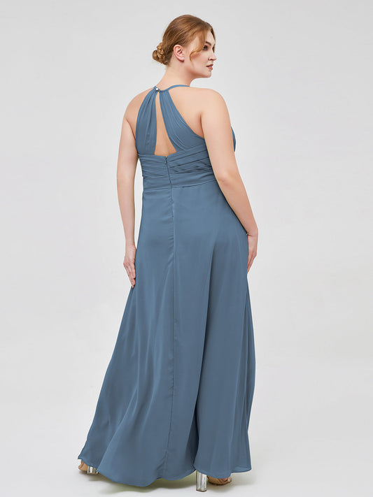 Babaroni AstridVestido elegante de dama de honor con tirantes finos y escote en V Azul Polvoriento Tallas Grandes