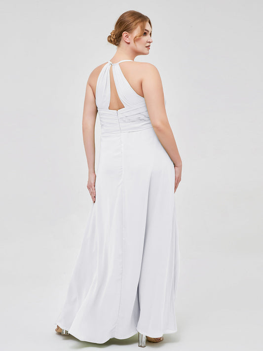 Babaroni AstridVestido elegante de dama de honor con tirantes finos y escote en V Blanco Tallas Grandes