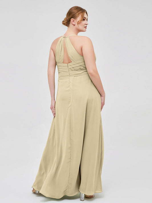Babaroni AstridVestido elegante de dama de honor con tirantes finos y escote en V Champán Tallas Grandes