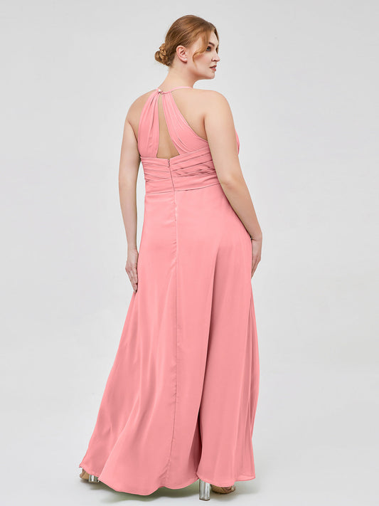 Babaroni AstridVestido elegante de dama de honor con tirantes finos y escote en V Coral Tallas Grandes