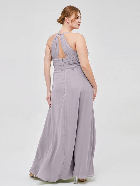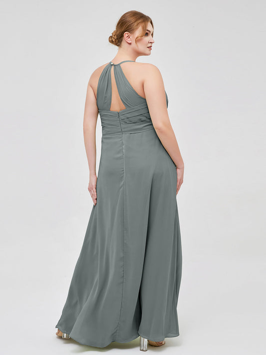 Babaroni AstridVestido elegante de dama de honor con tirantes finos y escote en V Gris Acero Tallas Grandes