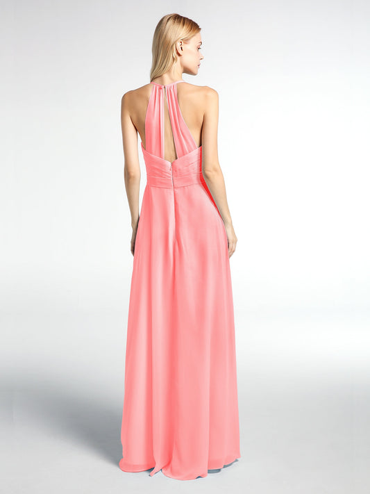 Babaroni AstridVestido elegante de dama de honor con tirantes finos y escote en V Coral