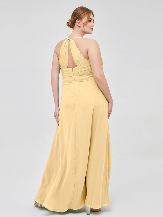 Babaroni AstridVestido elegante de dama de honor con tirantes finos y escote en V Oro Tallas Grandes