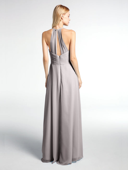 Babaroni AstridVestido elegante de dama de honor con tirantes finos y escote en V Plata