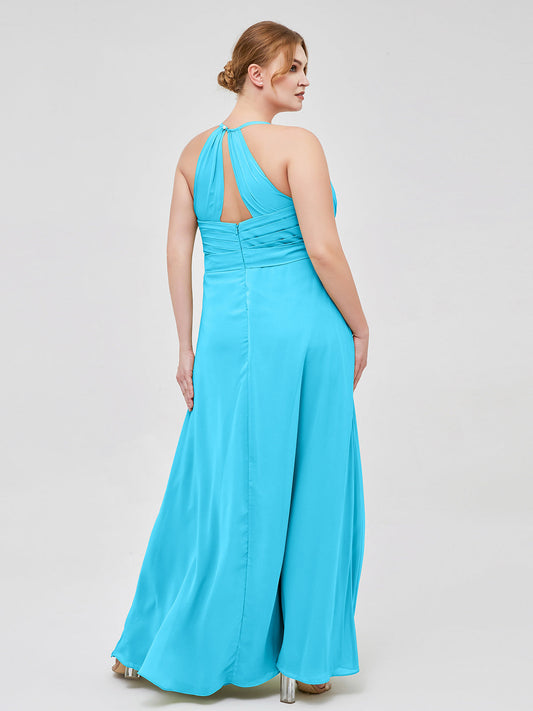 Babaroni AstridVestido elegante de dama de honor con tirantes finos y escote en V Pavo real Tallas Grandes