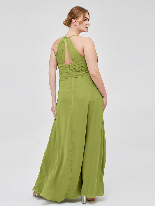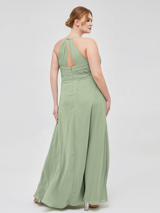 Babaroni AstridVestido elegante de dama de honor con tirantes finos y escote en V Salvia Tallas Grandes