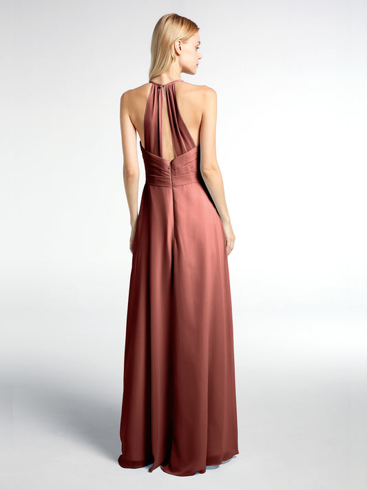 Babaroni AstridVestido elegante de dama de honor con tirantes finos y escote en V Terracota