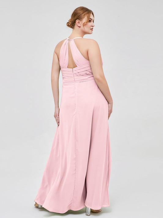 Babaroni AstridVestido elegante de dama de honor con tirantes finos y escote en V Rosa Claro Tallas Grandes