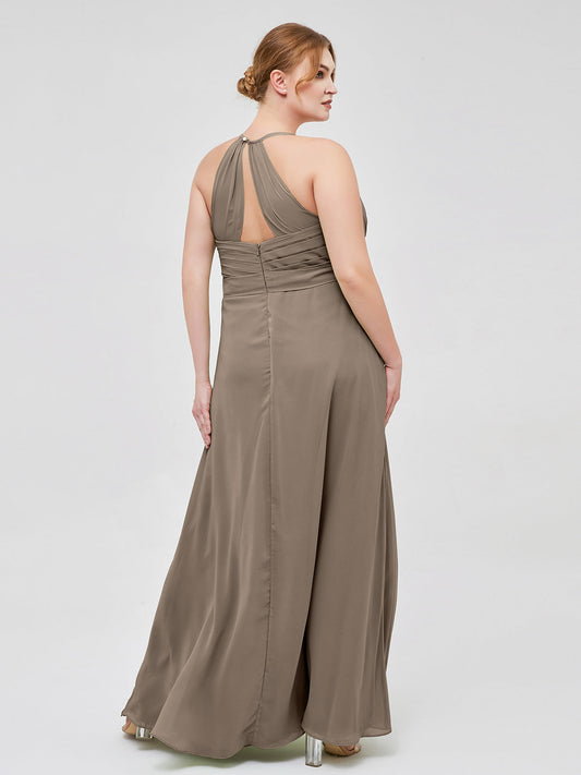 Babaroni AstridVestido elegante de dama de honor con tirantes finos y escote en V Topo