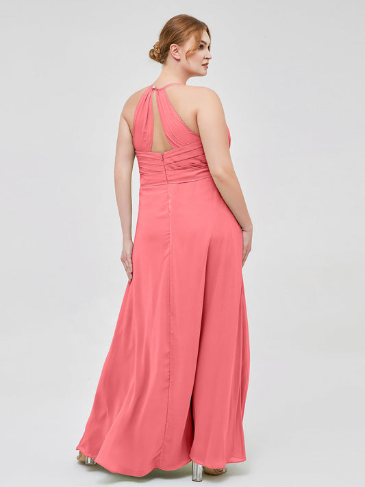 Babaroni AstridVestido elegante de dama de honor con tirantes finos y escote en V Sandía Tallas Grandes