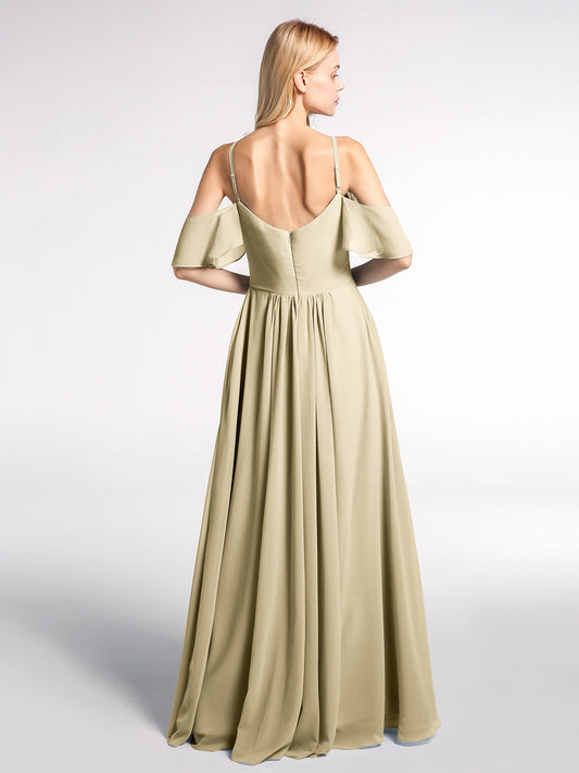 Babaroni SabrinaVestido imperio de chiffon con hombros descubiertos y bolsillos Champán