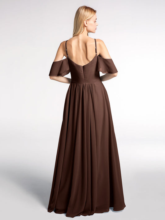 Babaroni SabrinaVestido imperio de chiffon con hombros descubiertos y bolsillos Chocolate Tallas Grandes