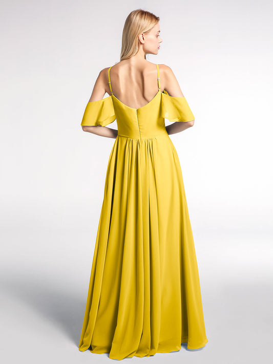 Babaroni SabrinaVestido imperio de chiffon con hombros descubiertos y bolsillos Caléndula Tallas Grandes