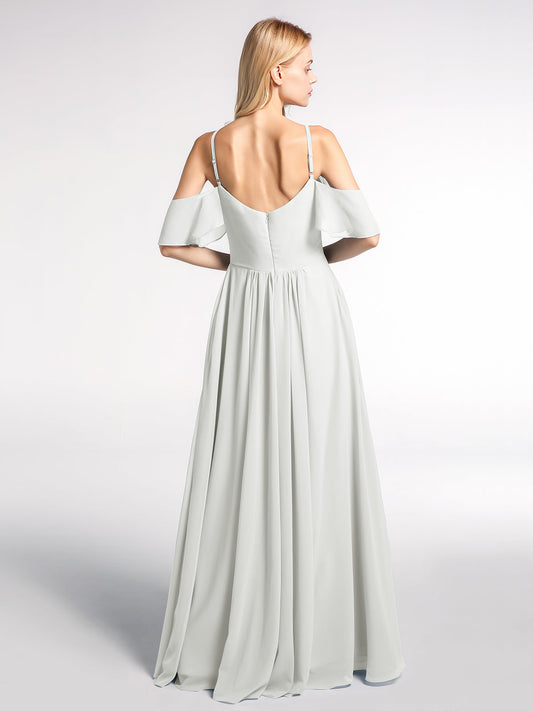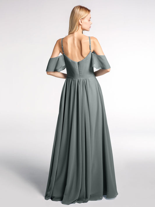 Babaroni SabrinaVestido imperio de chiffon con hombros descubiertos y bolsillos Gris Acero