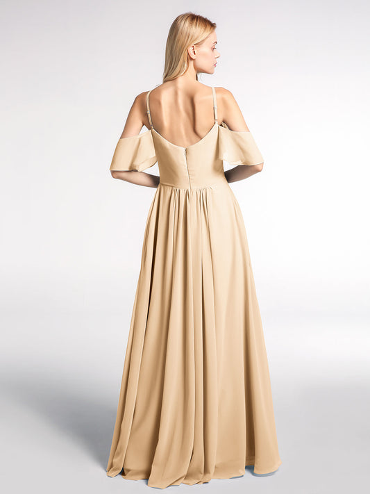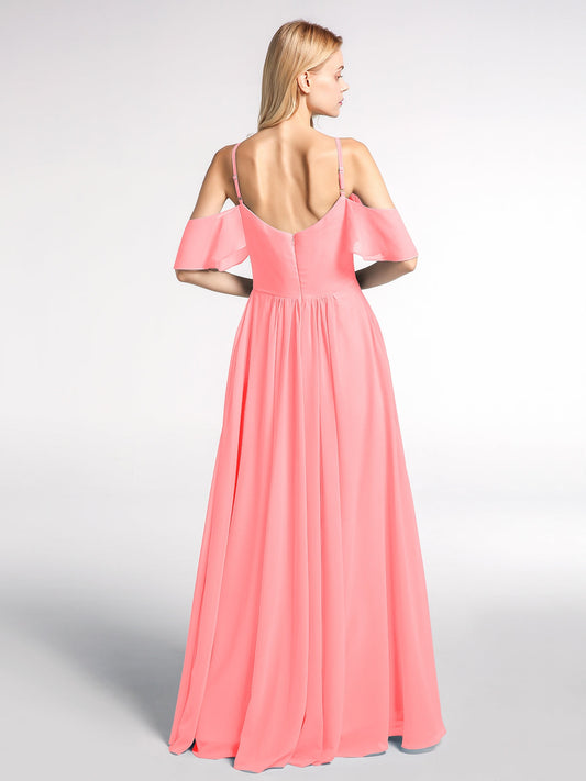 Babaroni SabrinaVestido imperio de chiffon con hombros descubiertos y bolsillos Melocotón