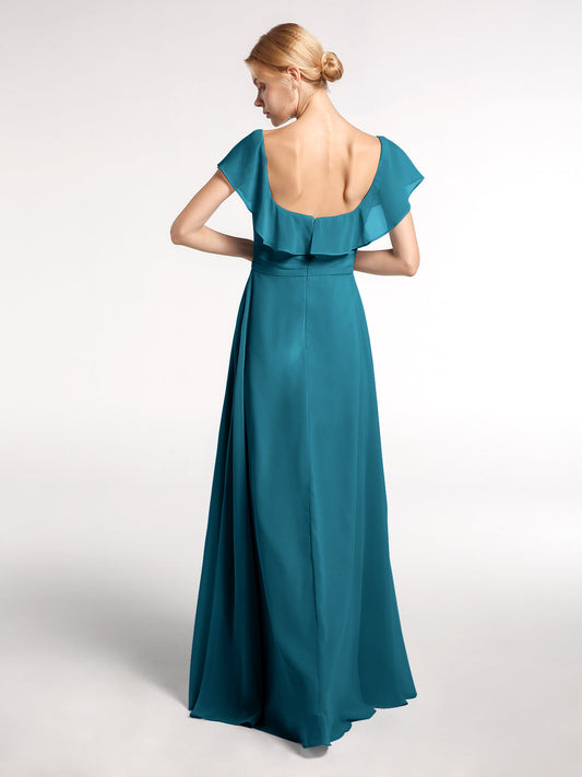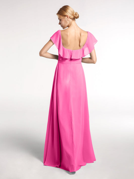 Babaroni DinahVestido largo de chiffon con escote cuadrado y abertura frontal Azalea