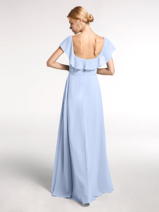 Babaroni DinahVestido largo de chiffon con escote cuadrado y abertura frontal Azul Cielo
