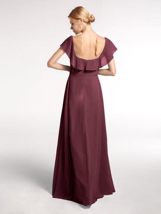 Babaroni DinahVestido largo de chiffon con escote cuadrado y abertura frontal Cabernet Tallas Grandes