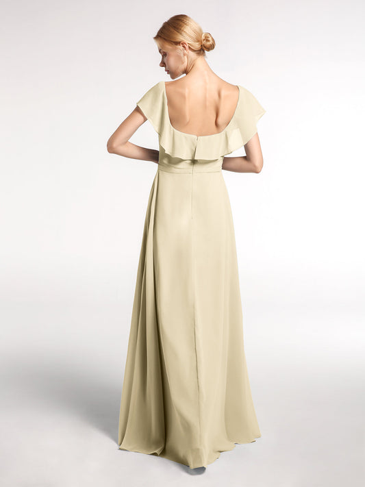 Babaroni DinahVestido largo de chiffon con escote cuadrado y abertura frontal Champán