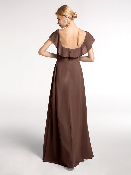 Babaroni DinahVestido largo de chiffon con escote cuadrado y abertura frontal Chocolate