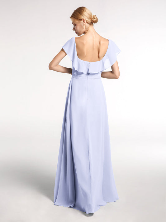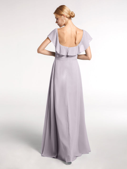 Babaroni DinahVestido largo de chiffon con escote cuadrado y abertura frontal Crepúsculo