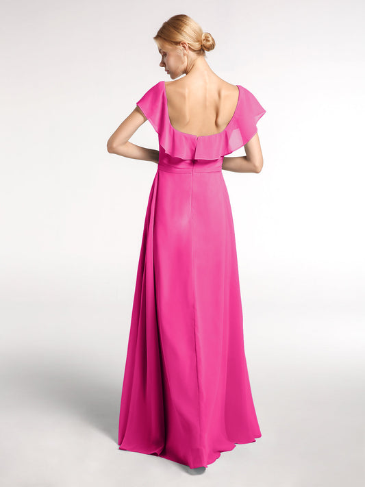 Babaroni DinahVestido largo de chiffon con escote cuadrado y abertura frontal Fucsia