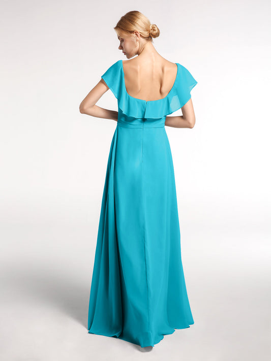 Babaroni DinahVestido largo de chiffon con escote cuadrado y abertura frontal Jade