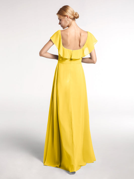 Babaroni DinahVestido largo de chiffon con escote cuadrado y abertura frontal Caléndula Tallas Grandes