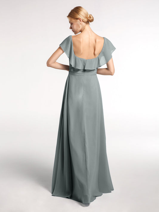 Babaroni DinahVestido largo de chiffon con escote cuadrado y abertura frontal Gris Acero
