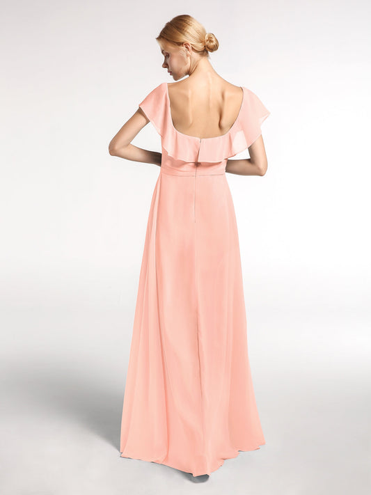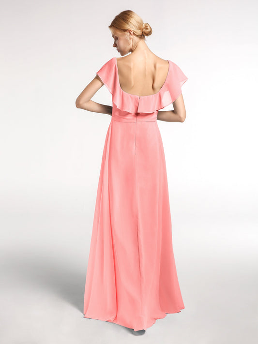 Babaroni DinahVestido largo de chiffon con escote cuadrado y abertura frontal Coral