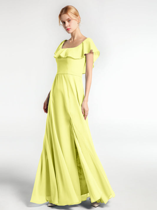 Babaroni DinahVestido largo de chiffon con escote cuadrado y abertura frontal Limón