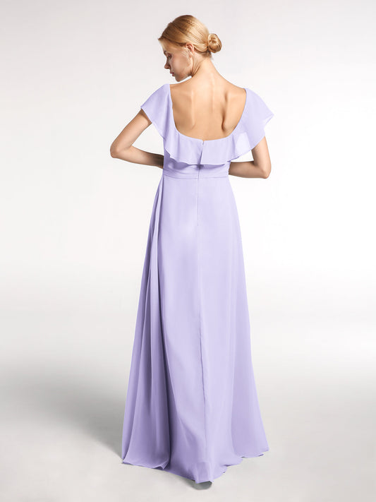 Babaroni DinahVestido largo de chiffon con escote cuadrado y abertura frontal Lila
