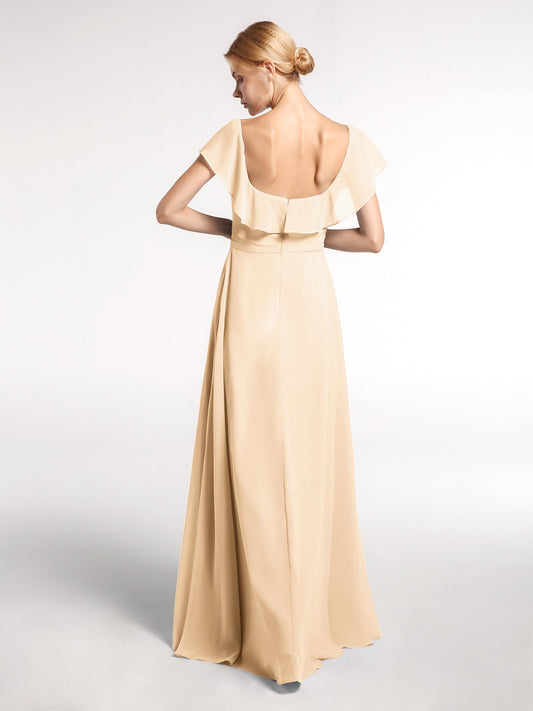 Babaroni DinahVestido largo de chiffon con escote cuadrado y abertura frontal Marfil Tallas Grandes