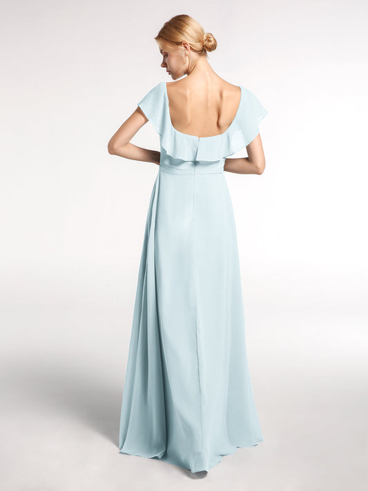 Babaroni DinahVestido largo de chiffon con escote cuadrado y abertura frontal Regencia