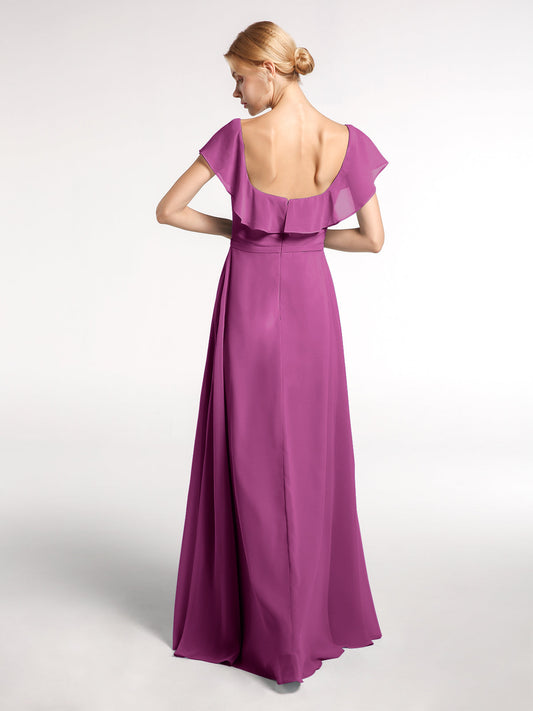 Babaroni DinahVestido largo de chiffon con escote cuadrado y abertura frontal Orquídea