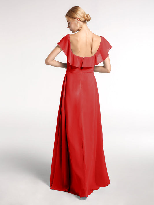 Babaroni DinahVestido largo de chiffon con escote cuadrado y abertura frontal Rojo Tallas Grandes