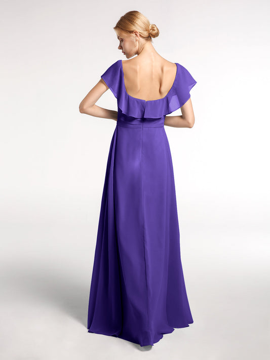 Babaroni DinahVestido largo de chiffon con escote cuadrado y abertura frontal Orquídea Tallas Grandes