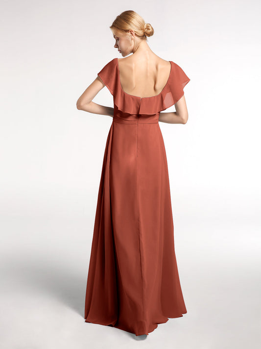 Babaroni DinahVestido largo de chiffon con escote cuadrado y abertura frontal Óxido Tallas Grandes