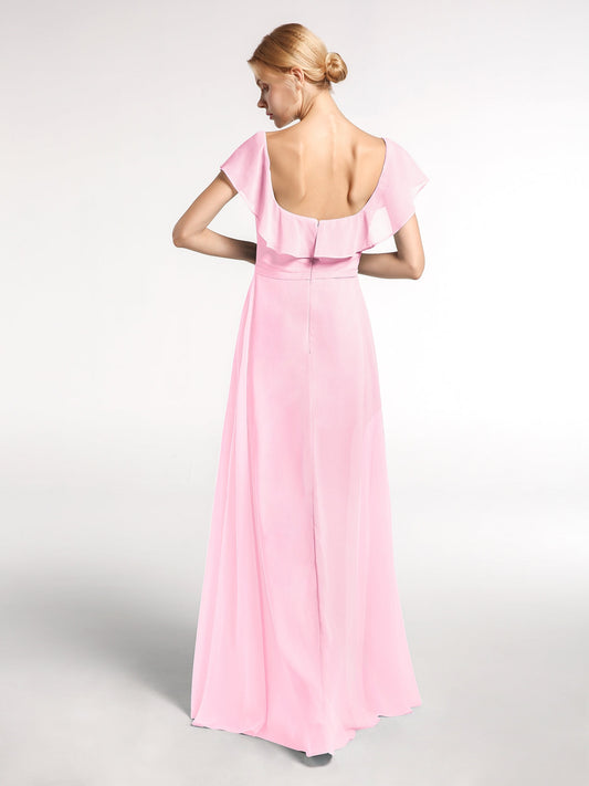Babaroni DinahVestido largo de chiffon con escote cuadrado y abertura frontal Rosa Chicle
