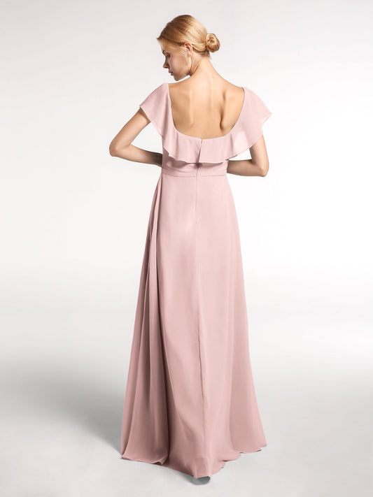 Babaroni DinahVestido largo de chiffon con escote cuadrado y abertura frontal Rosa Polvoriento