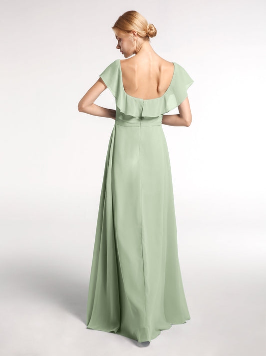 Babaroni DinahVestido largo de chiffon con escote cuadrado y abertura frontal Salvia Tallas Grandes