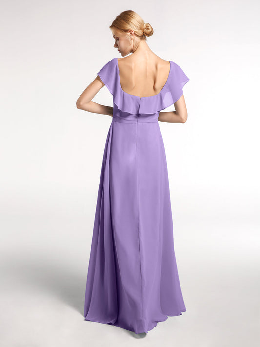 Babaroni DinahVestido largo de chiffon con escote cuadrado y abertura frontal Spa Tallas Grandes