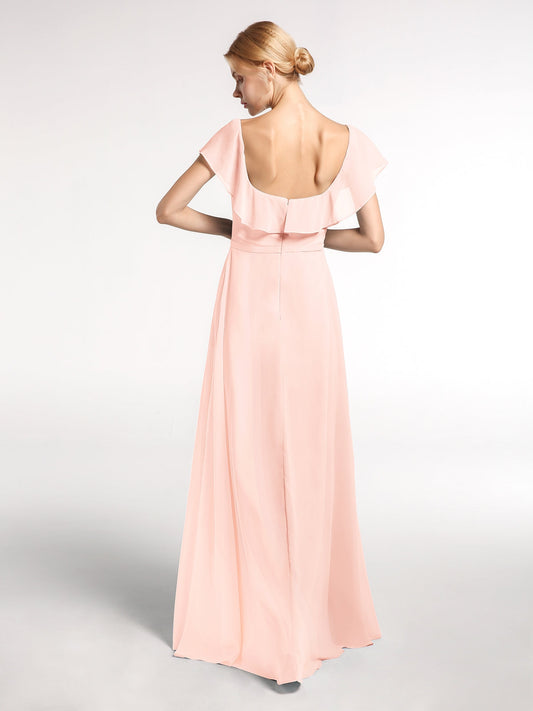 Babaroni DinahVestido largo de chiffon con escote cuadrado y abertura frontal Rosa perlado